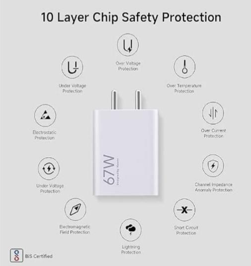 3X Faster charging than conventional chargers. Intelligent fast charging with Quick Charge Technology at 5V/4A, 10V/6.5A output. The charger auto detects your device and charges it at its fastest supported speed. Compact Design with premium hard ABS Plastic body for extra durability and sturdiness ,BIS certified to provide safe and reliable charging.